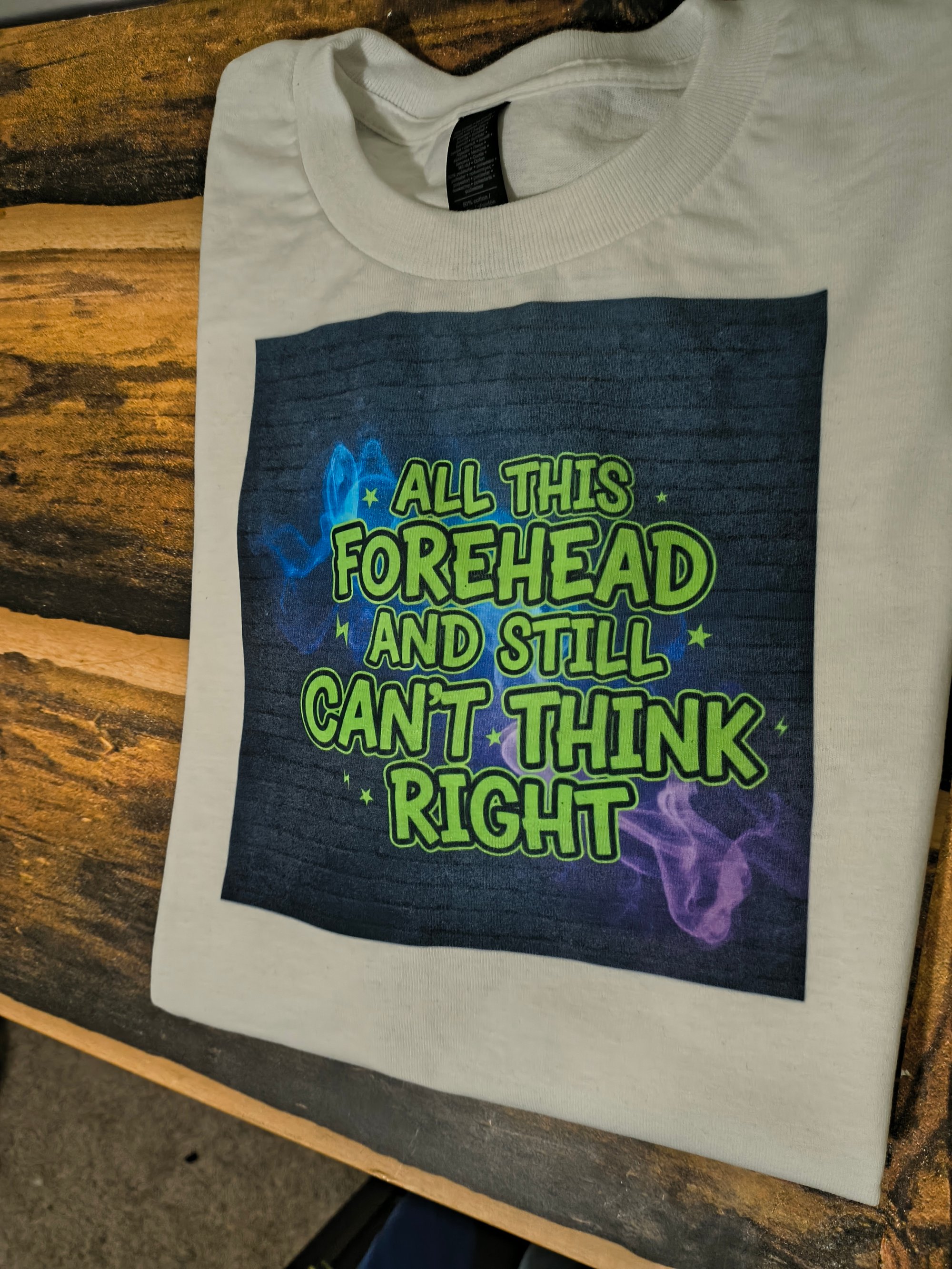 All this forehand and still cant think right sublimated tshirt. 50/50 cotton polyester blend. Size X-large available in white.